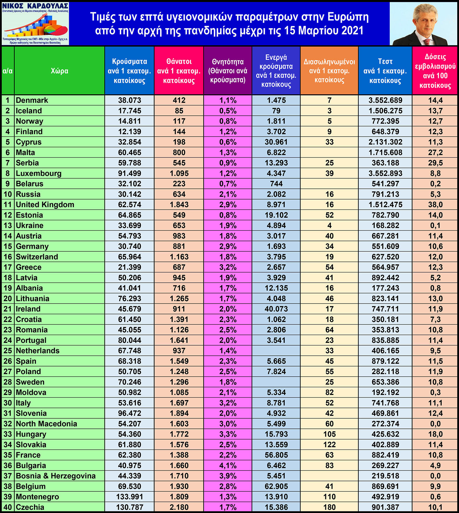 Η σύγκριση και των 7 υγειονομικών παραμέτρων οδηγεί σε αντικειμενικά και ασφαλή συμπεράσματα για κάθε χώρα.