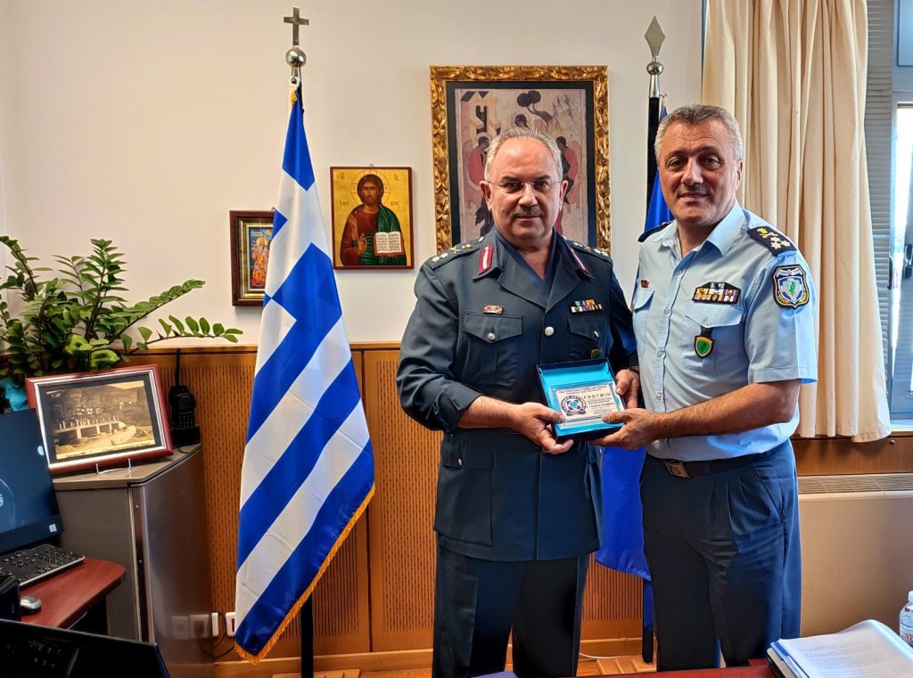 Τον κ. Επιθεωρητή υποδέχθηκε στο Αστυνομικό Μέγαρο Λάρισας, ο Γενικός Περιφερειακός Αστυνομικός Διευθυντής Θεσσαλίας, Υποστράτηγος Αστέριος Μαντζιώκας.
