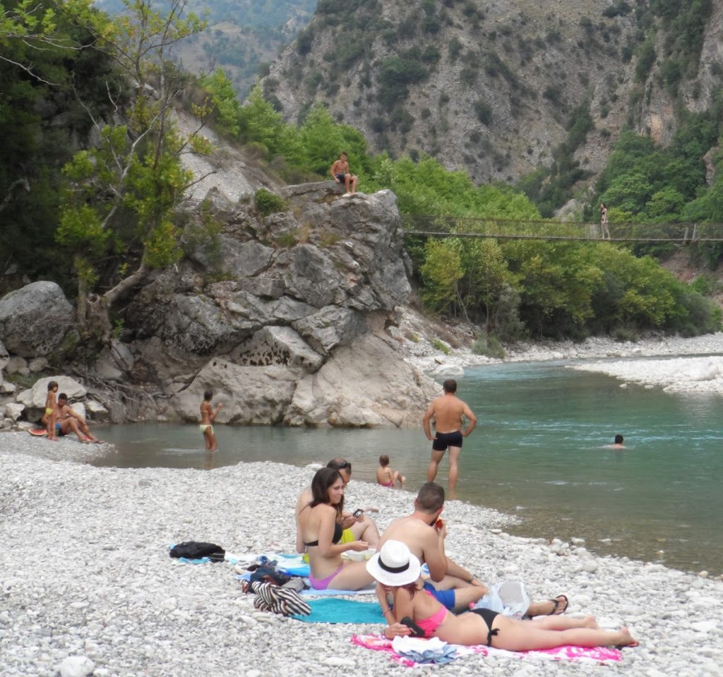 φοράς αθλητικά παπούτσια γιατί έχει κατάβαση αρκετά βατή όμως, αλλιώς υπάρχει και δρόμος που μπορείς να φτάσεις με 4Χ4 ακριβώς μπροστά στην παραλία.Τα κρυστάλλινα, γάργαρα νερά του Αχελώου σε καλούν να χωθείς στην αγκαλιά τους και όταν αυτό συμβεί, τότε γίνεσαι ένα με τη φύση κι αυτή απλόχερα σου χαρίζει τη γαλήνη της. Για κολύμπι ή υδρομασάζ, λασπόλουτρο ή ψάρεμα ο Αχελώος αποτελεί τον νούμερο 1 προορισμό για τα Τζουμέρκα!