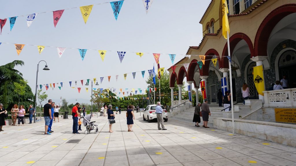 Είναι χαρακτηριστικό πως η «ουρά» του κόσμου εκτείνεται σε απόσταση πολλών μέτρων από την είσοδο του Ιερού Ναού, ενώ οι πολίτες περιμένουν υπομονετικά και σε απόσταση ασφαλείας μεταξύ τους – παρά την ζέστη και την ορθοστασία – μέχρι να φτάσουν μπροστά στα λείψανα του Αγίου και να προσκυνήσουν.