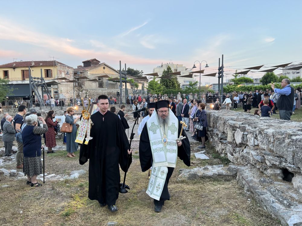 Μετά το πέρας της τελετής και υπό τους ήχους της φιλαρμονικής του Ιερού Ναού Αγίου Γεωργίου Μεγαλομάρτυρος Λαρίσης, με υπεύθυνο τον Γεν. Αρχιερατικό Επίτροπο της Μητροπόλεώς μας π. Νικηφόρο Κοντογιάννη, πραγματοποιήθηκε ιερά λιτανεία με κατεύθυνση τον Μητροπολιτικό Ναό, όπου ανοίχτηκε και τέθηκε σε προσκύνηση η Λάρνακα των Λειψάνων του Μυροβλήτου μας Αγίου, ενώ ακολούθως, τελέστηκε Ιερά Αγρυπνία, ιερουργούντος του Πρωτοσυγκέλλου της Μητροπόλεως μας π. Ιγνατίου Μουρτζανού και πλειάδος ιερέων.