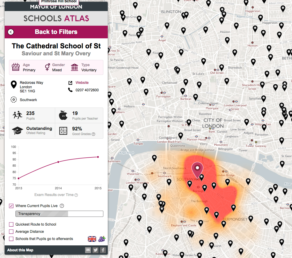 Ο Σχολικός Άτλαντας του Λονδίνου, αξιοποιεί τα ανοιχτά δεδομένα και αποτελεί εργαλείο επιλογής σχολείου και τόπου κατοικίας μιας οικογένειας.
