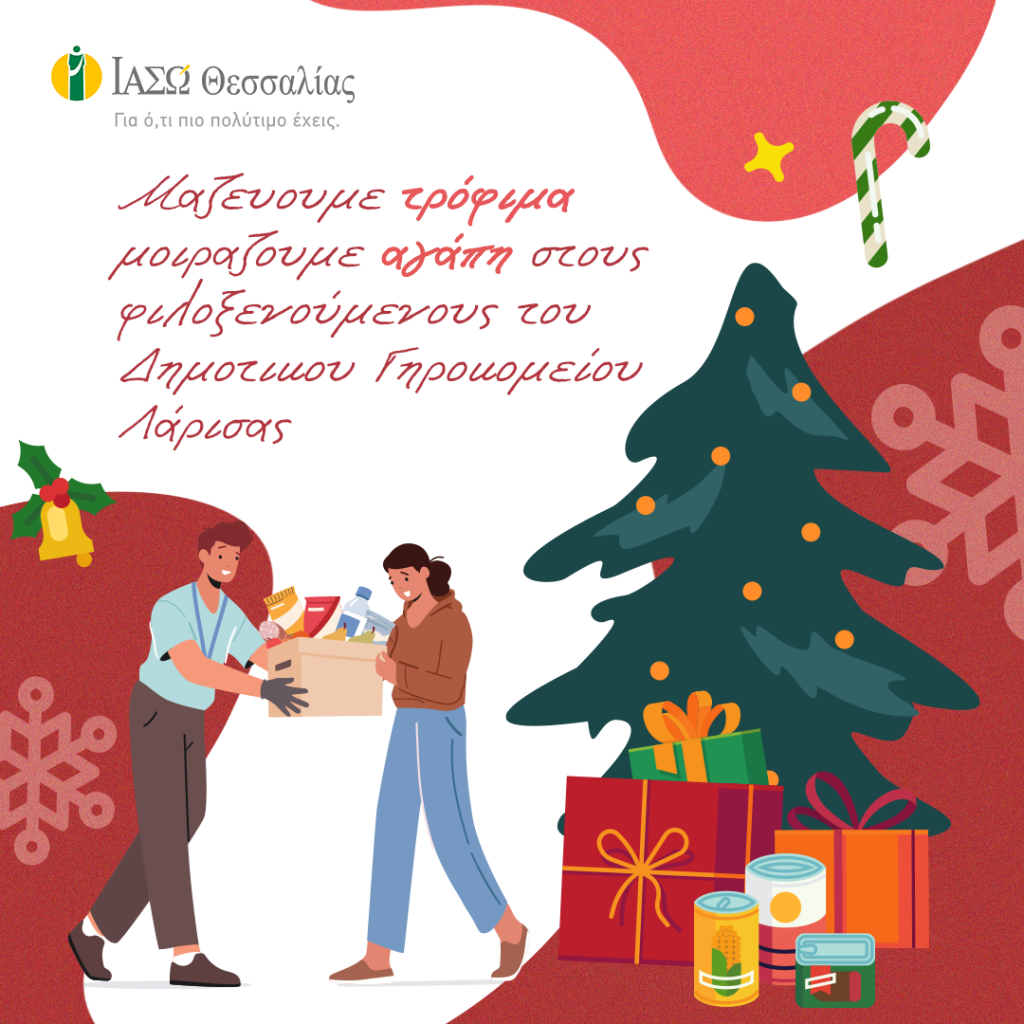Και αυτές τις γιορτές, το ΙΑΣΩ Θεσσαλίας στέκεται δίπλα στους φιλοξενούμενους ηλικιωμένους του Δημοτικού Γηροκομείου Λάρισας και, μεταξύ άλλων δράσεων, συγκεντρώνει τρόφιμα και είδη πρώτης ανάγκης.
