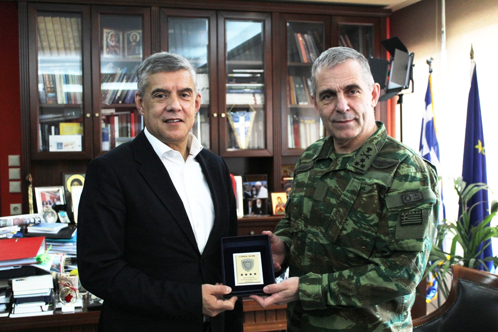 Με τον νέο Διοικητή του Στρατηγείου της 1ης Στρατιάς Αντιστράτηγο Άγγελο Χουδελούδη συναντήθηκε ο Περιφερειάρχης Θεσσαλίας Κώστας Αγοραστός. Στη συνάντηση επιβεβαιώθηκε η διαχρονική συνεργασία έργων -και όχι λόγων- μεταξύ της Περιφέρειας Θεσσαλίας και της 1ης Στρατιάς, καθώς τα τελευταία χρόνια η Περιφέρεια Θεσσαλίας έχει χρηματοδοτήσει έργα, συνολικού προϋπολογισμού ένταξης 6 εκατομμυρίων ευρώ όπως: