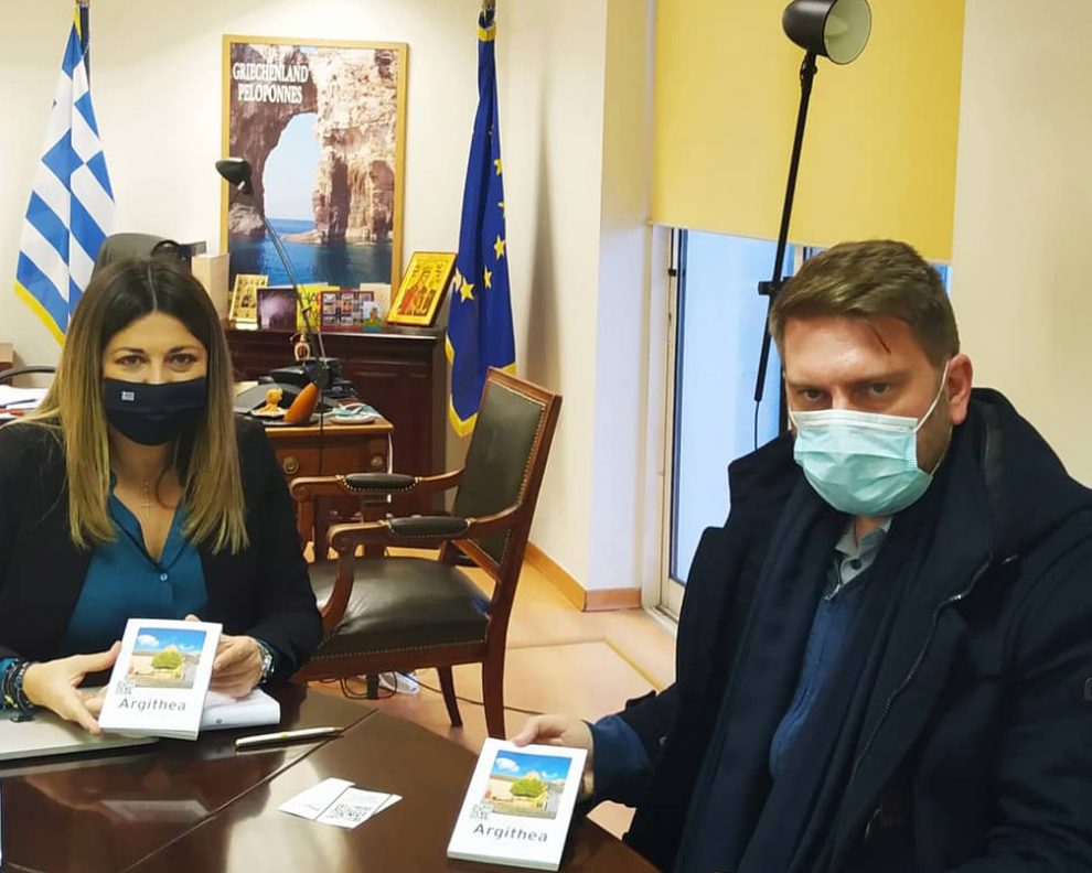 Ο Δήμαρχος Αργιθέας Ανδρέας Στεργίου συναντήθηκε με τη νέα Υφυπουργό Τουρισμού Σοφία Ζαχαράκη, προκειμένου να συζητηθεί ο σχεδιασμός για τη χάραξη στρατηγικής ανάπτυξης ποικίλων μορφών εναλλακτικού εγχώριου τουρισμού, αμέσως μόλις το επιτρέψουν οι συνθήκες.