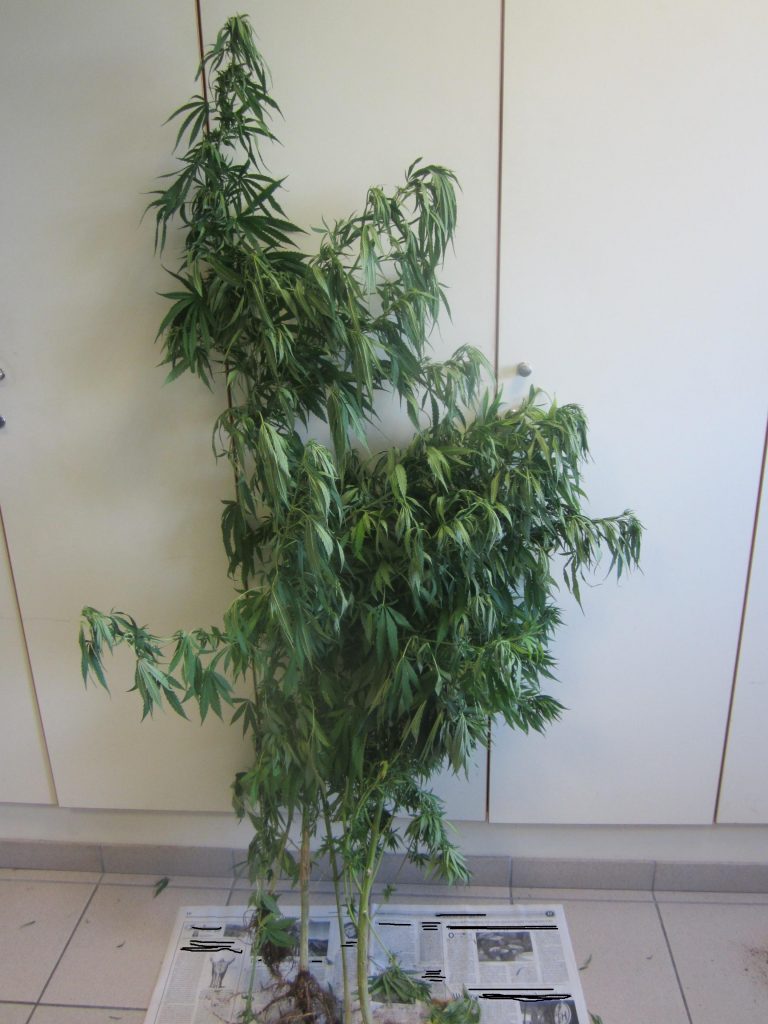 · (5) καλλιεργούμενα δενδρύλλια κάνναβης, ύψους έως (1,80) μέτρα,