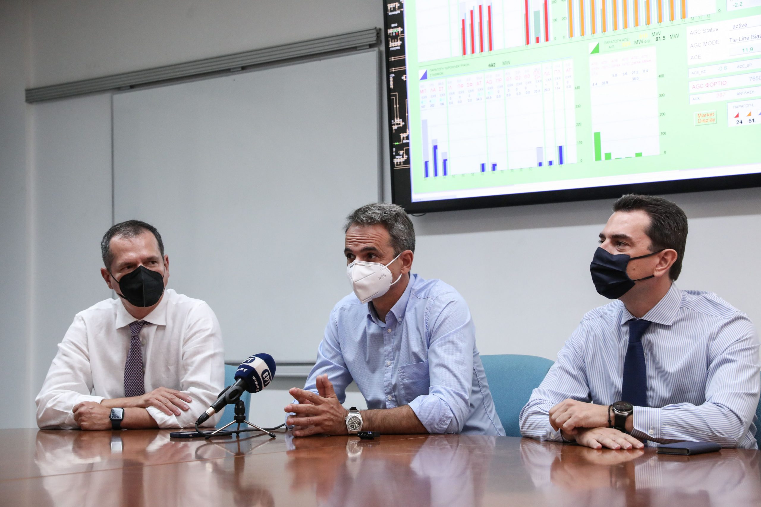 Σύσκεψη με τον υπουργό Περιβάλλοντος και Ενέργειας Κώστα Σκρέκα, διοικητικά στελέχη του ΑΔΜΗΕ, του ΔΕΔΔΗΕ και παραγωγούς ηλεκτρικής ενέργειας είχε το πρωί ο Πρωθυπουργός Κυριάκος Μητσοτάκης στο Εθνικό Κέντρο Ελέγχου Ενέργειας.