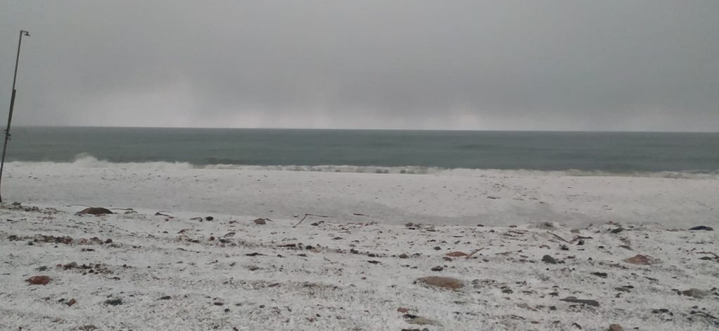 Στα παράλια του νομού οι λευκές νιφάδες του χιονιού έφθασαν μέχρι και τη θάλασσα, δημιουργώντας ένα μαγευτικό σκηνικό.