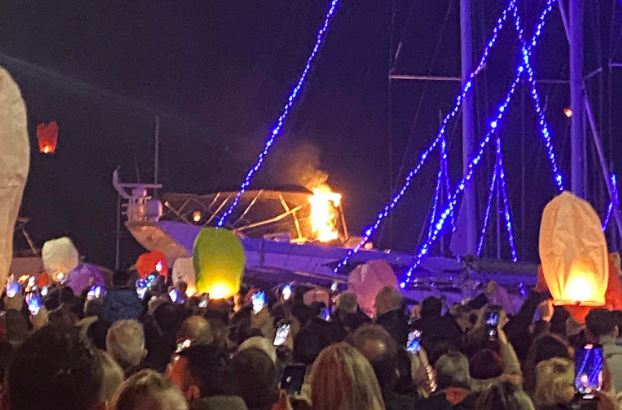 Φαναράκι, “προσγειώθηκε” σε σκάφος στην παραλία του Βόλου και ξέσπασε φωτιά, προκαλώντας σοβαρές υλικές ζημιές. Στην παραλία επικράτησε “πανικός”, την βραδιά των φαναριών”, με εκατοντάδες άτομα , κυρίως παιδιά να είναι συγκεντρωμένα στον χώρο, ενώ έσπευσαν δυο πυροσβεστικά για να την κατασβέσουν.