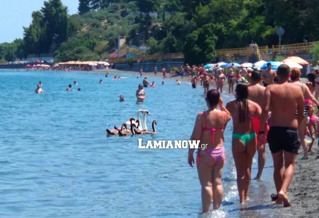 Μια όμορφη έκπληξη περίμενε το πρωί του Σαββάτου τους λουόμενους στο Ασπρονέρι Καμένων Βούρλων. Οι πανέμορφοι επισκέπτες, βρίσκονται κατά πληροφορίες εδώ και αρκετές μέρες στην… περιοχή και έκαναν μικρούς και μεγάλους να χάσουν τα λόγια τους αρπάζοντας τα κινητά τους τηλέφωνα προκειμένου να καταγράψουν την όμορφη στιγμή. Άλλωστε πρόκειται αναμφισβήτητα για τα πιο ωραία υδρόβια πτηνά.