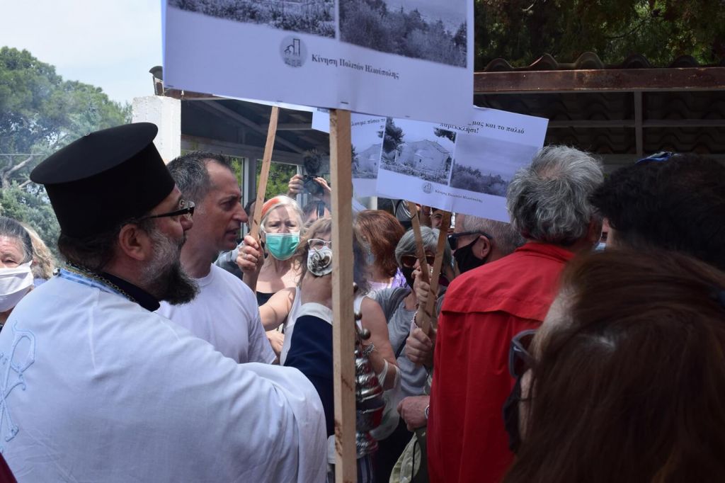 Έπειτα από κάλεσμα της Κίνησης Πολιτών Ηλιούπολης, δεκάδες πολίτες βρέθηκαν το πρωί της Κυριακής στο εκκλησάκι του προφήτη Ηλία προκειμένου να πραγματοποιήσουν συμβολική καθαίρεση και ακτιβιστικές δράσεις κατά του αυθαιρέτου κτίσματος.