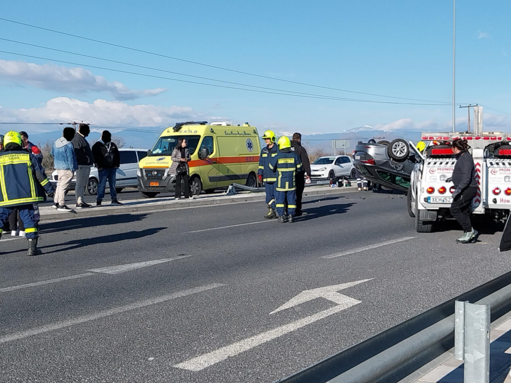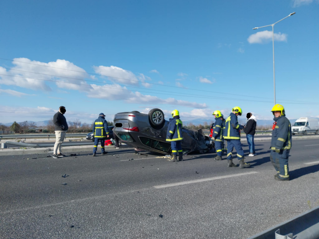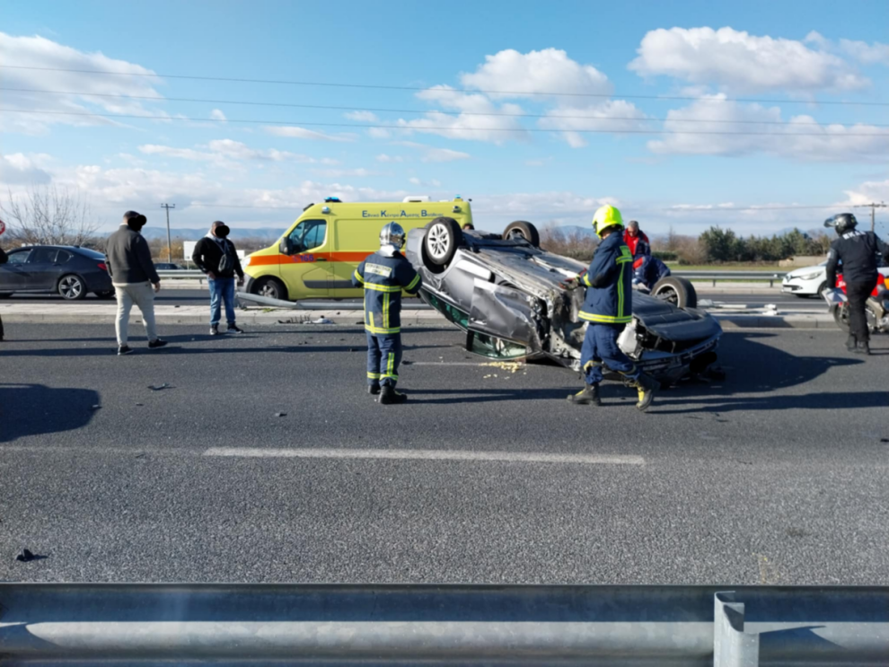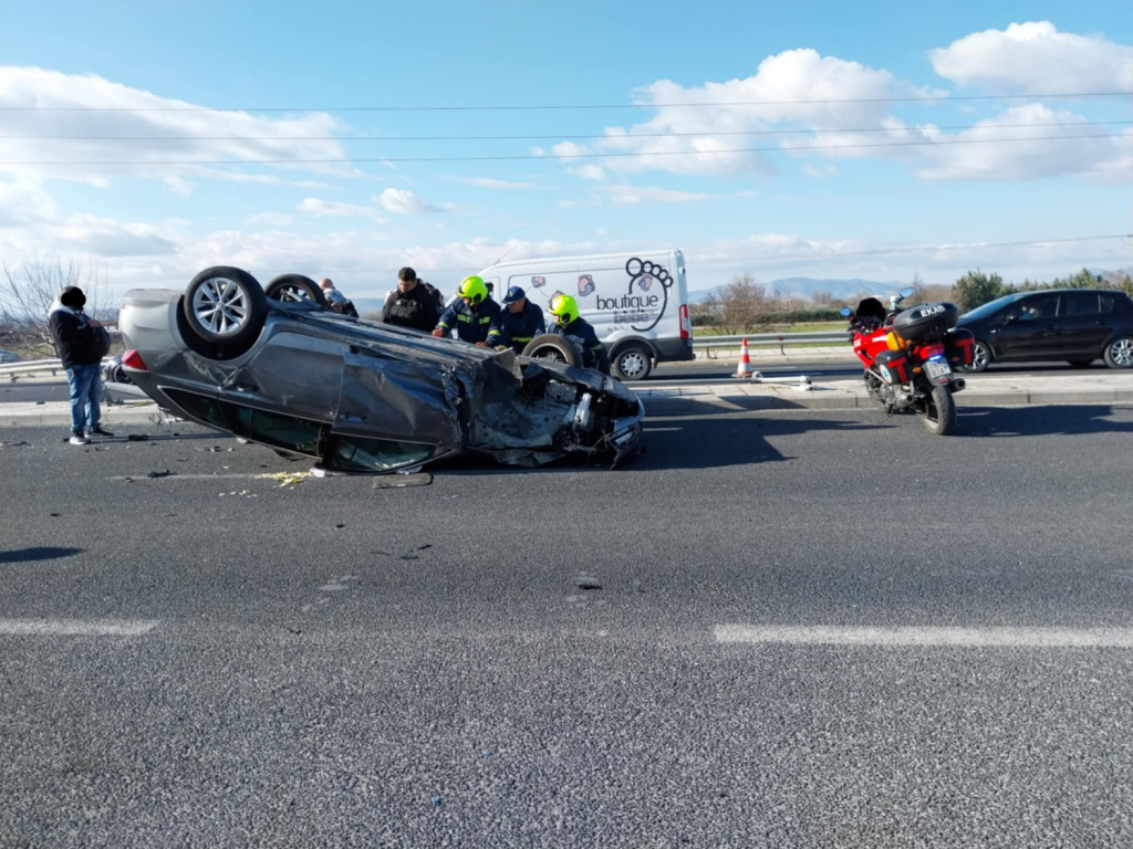 Η σφοδρότητα της σύγκρουσης ήταν τέτοια που είχε ως αποτέλεσμα ένα αυτοκίνητο, εκ των εμπλεκομένων στο τροχαίο, να τουμπάρει στη μέση του δρόμου.