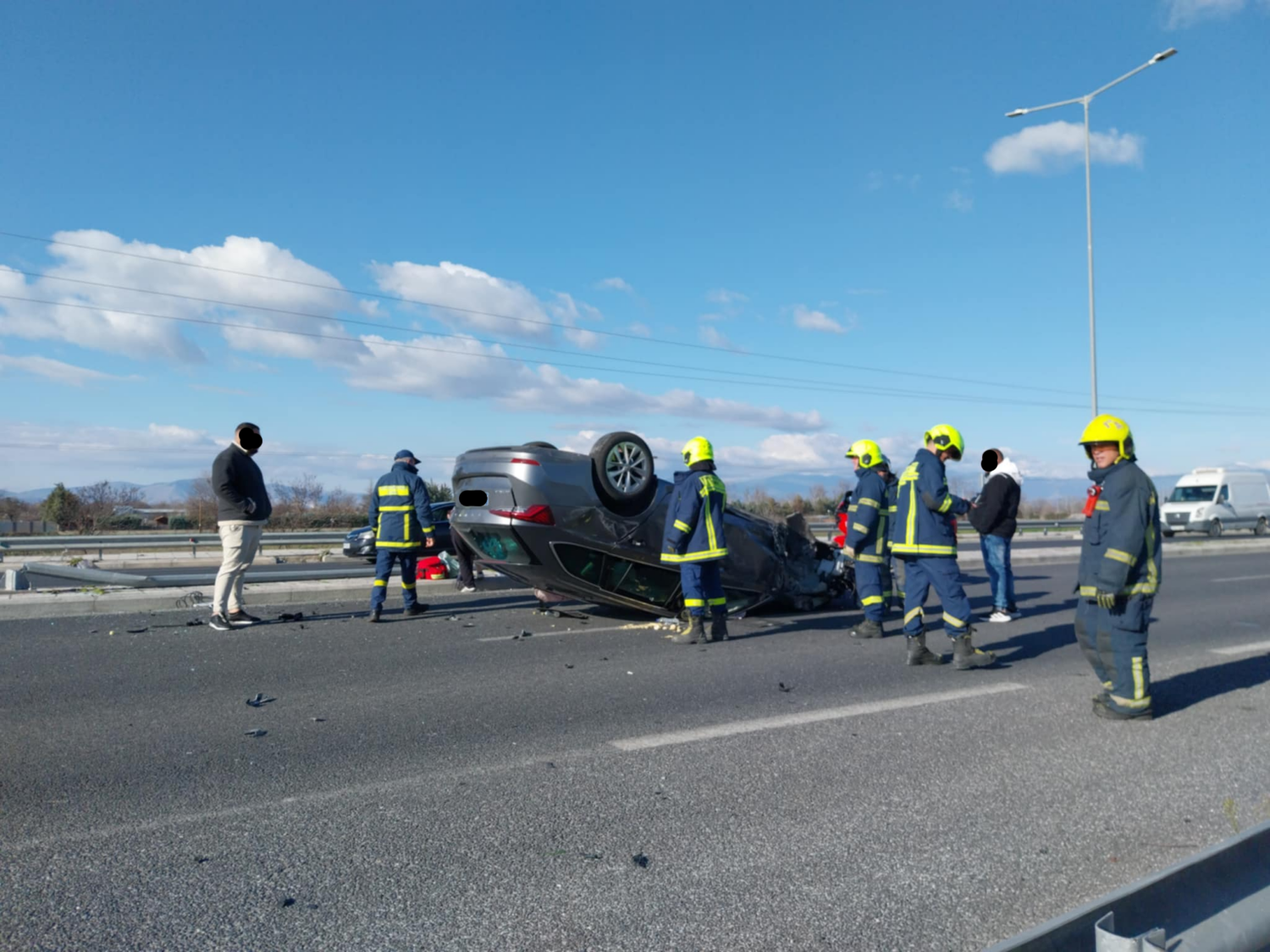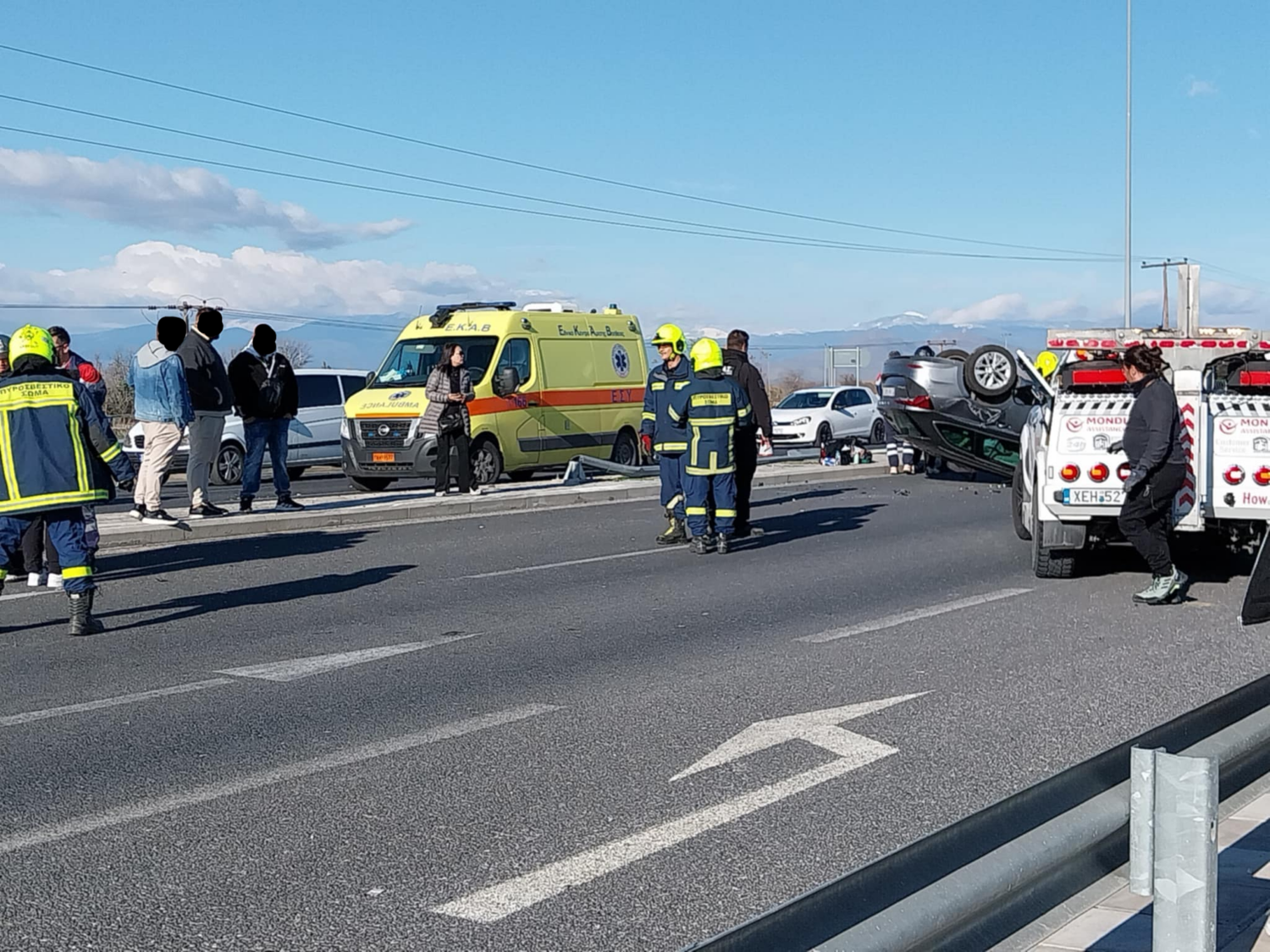 Συνάμα επί τόπου βρέθηκαν πυροσβέστες, ώστε να επιχειρήσουν – εφόσον απαιτούνταν – απεγκλωβισμό επιβαινόντων, όπως και να συνδράμουν στον καθαρισμό του οδοστρώματος.
