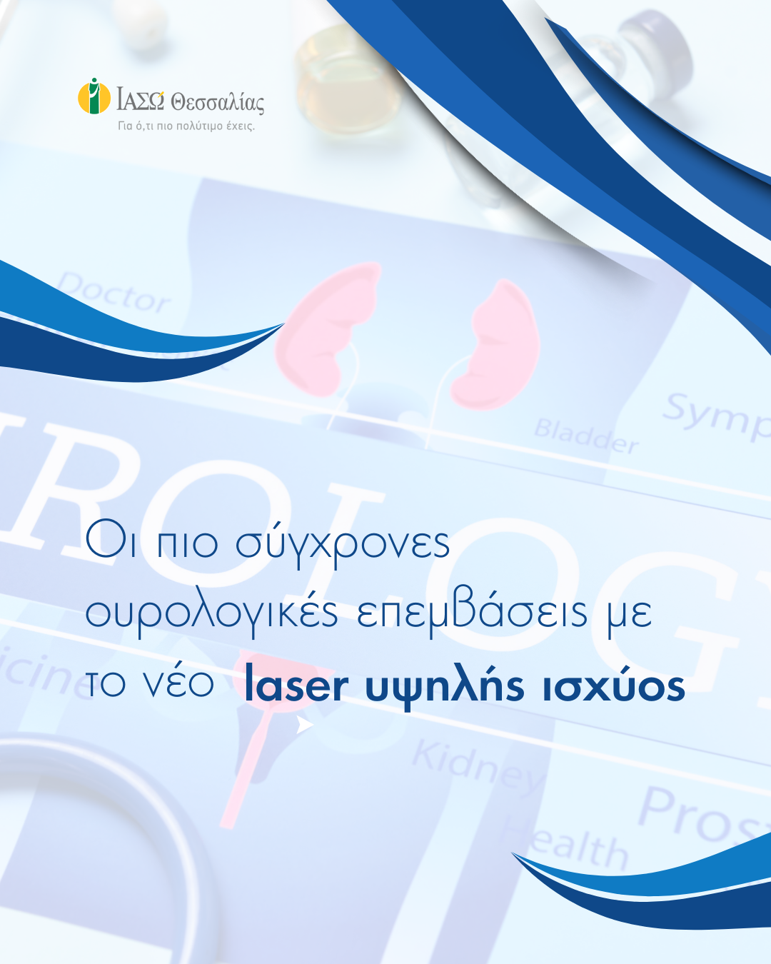 Οι νεότερες τεχνικές στις ουρολογικές επεμβάσεις, λαμβάνουν χώρα στο ΙΑΣΩ Θεσσαλίας με τη συμβολή της επαναστατικής τεχνολογίας laser. Το νέο laser υψηλής ισχύος τεχνολογίας Holmium:YAG 152Watt που βρίσκεται πλέον στο ΙΑΣΩ Θεσσαλίας είναι το ιδανικό για τομή, εκτομή, διατομή, καυτηρίαση καθώς και για αιμόσταση μαλακού ιστού σε ανοιχτά και ενδοσκοπικά περιστατικά. Μπορεί να χρησιμοποιηθεί: α) για περιστατικά λιθοτριψίας, β) για περιστατικά καλοήθους υπερπλασίας του προστάτη (BPH) Benign Prostatic Hyperplasia και γ) για χρήση σε μαλακό ιστό.