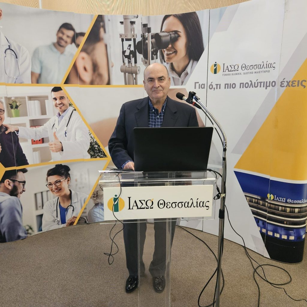 Με θέμα που συγκέντρωσε έντονο επιστημονικό ενδιαφέρον, πραγματοποιήθηκε η νέα διάλεξη του ετήσιου κύκλου «Επιστημονικές Διαλέξεις 2025–2026» του ΙΑΣΩ Θεσσαλίας, με τίτλο «Σύγχρονα θαύματα στην Οφθαλμολογία». Ο Χειρουργός Οφθαλμίατρος και Διευθυντής της Α’ Οφθαλμολογικής Κλινικής, Ιωάννης Τσιαμπαλής, και ο Χειρουργός Οφθαλμίατρος – Επιμελητής της Κλινικής, Αλέξανδρος Τσιαμπαλής, παρουσίασαν τις πιο πρόσφατες εξελίξεις που αλλάζουν τα δεδομένα στη διάγνωση και τη θεραπεία παθήσεων των οφθαλμών. Τη συζήτηση συντόνισε ο Δρ. Απόστολος Κομνός, Αναισθησιολόγος – Εντατικολόγος και Διευθυντής Ιατρικής Υπηρεσίας του ΙΑΣΩ Θεσσαλίας.