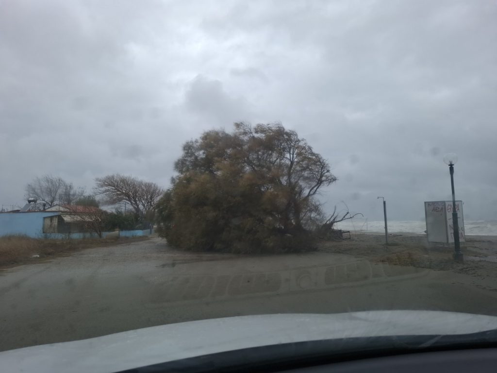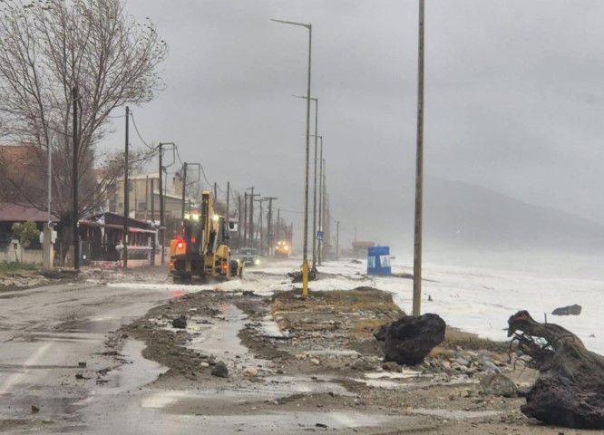 Πτώσεις δέντρων λόγω ισχυρών ανέμων σημειώθηκαν στο παραλιακό τμήμα Ομόλιο-Στόμιο-Κουλούρα-Μεσάγγαλα, όπου μηχανήματα έργου της Περιφέρειας τα περισυνέλλεξαν. Στον παραλιακό Αγιοκάμπου-Βελίκας λόγω της ανόδου της στάθμης της θάλασσας εξήλθε στο οδόστρωμα το νερό και έφερε φερτά υλικά και κορμούς δένδρων. Στο σημείο επιχειρούν 8 μηχανήματα της Περιφέρειας για την απομάκρυνση και αποκατάσταση της κυκλοφορίας.