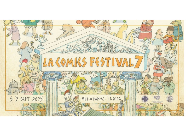 Το LAComicsFestival επιστρέφει για 7η συνεχή χρονιά, μετατρέποντας τη Λάρισα σε σημείο συνάντησης της σύγχρονης underground εικονογραφικής -και όχι μόνο- δημιουργίας! Από τις 5 έως τις 7 Σεπτεμβρίου 2025, ο Μύλος του Παππά θα φιλοξενήσει ένα τριήμερο αφιερωμένο στις τέχνες των comics, της εικονογράφησης, τη μεταξοτυπίας, του animation, της μουσικής και της street art, πάντα με ελεύθερη είσοδο σε όλες τις δράσεις του. Το επίσημο εικαστικό σχεδίασε ο καλεσμένος του Φεστιβάλ, Σουηδός εικονογράφος Mattias Adolfsson.