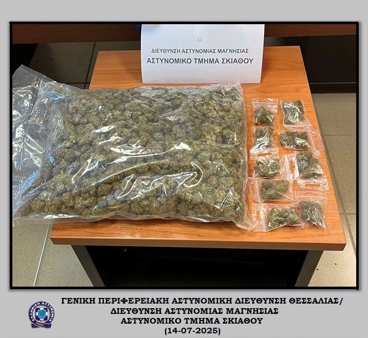 Συνελήφθη, χθες (13-07-2025) το απόγευμα στη Σκιάθο, από αστυνομικούς του Αστυνομικού Τμήματος Σκιάθου, ένας ημεδαπός άνδρας, για παράβαση της νομοθεσίας περί ναρκωτικών.