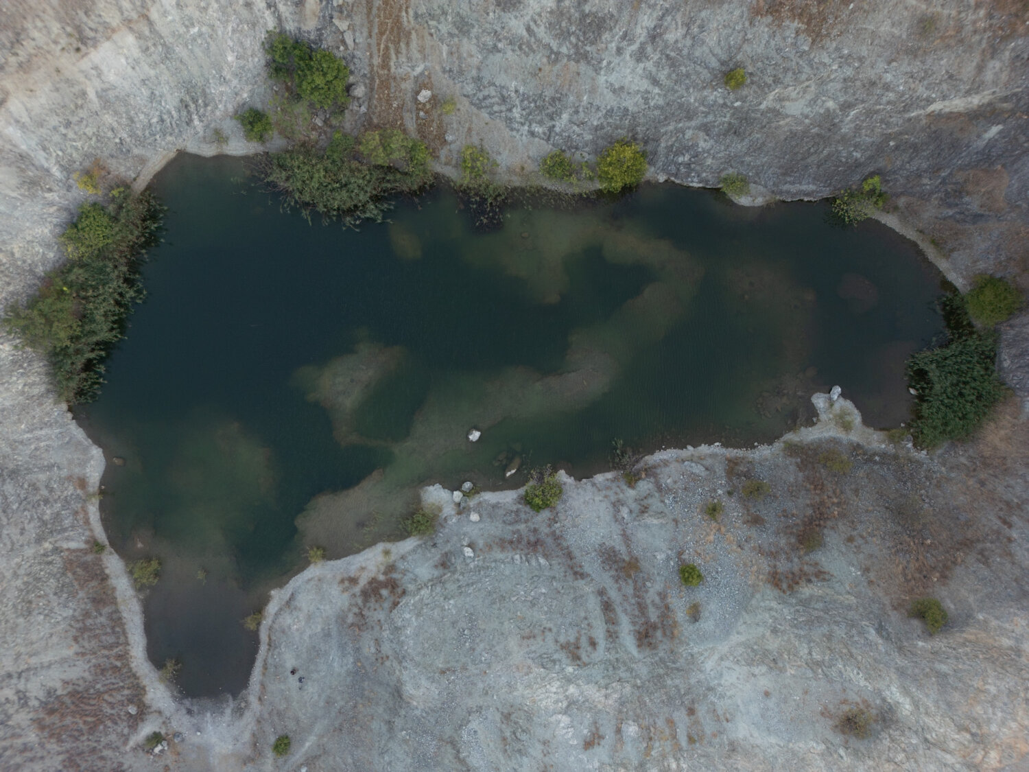 Εδώ και χρόνια τα έργα σταμάτησαν και η τρύπα έμεινε, να γεμίζει από νερό δημιουργώντας αυτή τη «κρυφή» λίμνη.