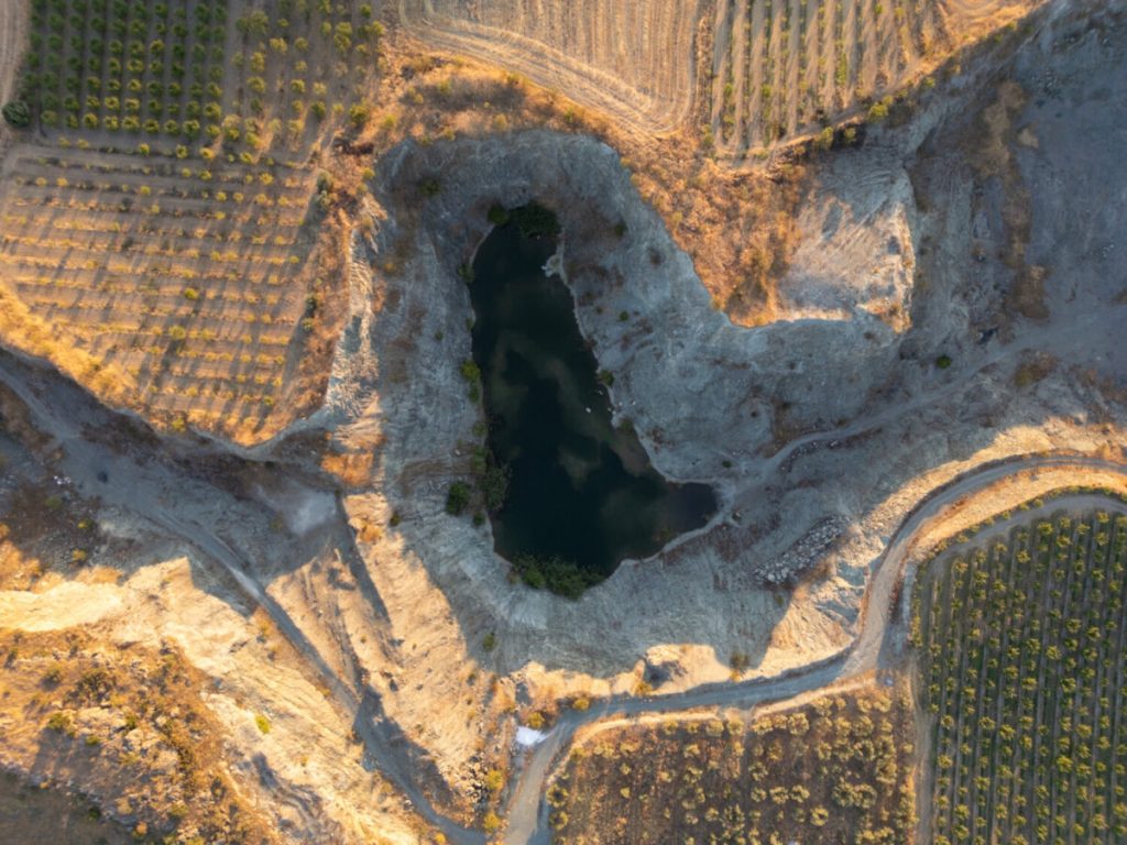 Εδώ και χρόνια τα έργα σταμάτησαν και η τρύπα έμεινε, να γεμίζει από νερό δημιουργώντας αυτή τη «κρυφή» λίμνη.
