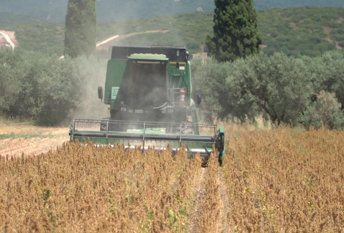 Ο αγρότης από τη Φθιώτιδα Γιώργος Παπαευσταθίου εξηγεί γιατί επέλεξε φέτος να καλλιεργήσει κινόα: Με την εταιρία του Κ.Β. Μάρκου που συνεργαζόμαστε χρόνια, αφού καλλιεργούμε βαμβάκια στην περιοχή της Φθιώτιδας, μας προτείνανε μια νέα καινοτόμο καλλιέργεια και είπαμε να την δοκιμάσουμε. Μετά τη συγκομιδή αποδεικνύεται ότι η απόφαση μας δικαιώθηκε. Αρχικά σκεφτήκαμε ότι πρόκειται για τρόφιμο, το οποίο το αναζητά η αγορά, επομένως και μέσω της συμβολαιακής γεωργίας αυτό δεν θα μας μείνει απούλητο. Εμείς οι νέοι που μείναμε πίσω στα χωριά μας, στη γη αντιμετωπίζουμε πολλές δύσκολες καταστάσεις. Όσοι μείναμε, πρέπει να βρούμε τον τρόπο και τη λύση μόνοι μας για να προχωρήσουμε παρακάτω. Έχουμε εμπιστοσύνη στην εταιρία, μας συμβουλεύει διαρκώς και μας δείχνει ότι σε αυτή τη νέα προσπάθεια δεν είμαστε μόνοι».
