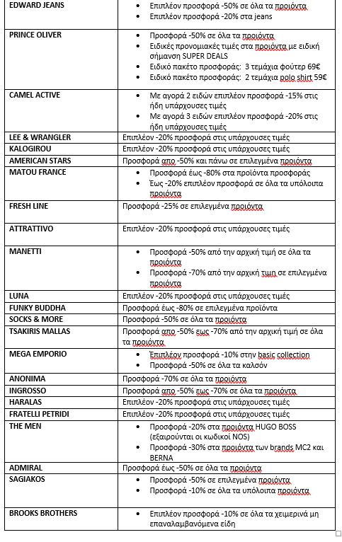 Δείτε αναλυτικά τις προσφορές ανά κατάστημα του Fashion City Outlet: