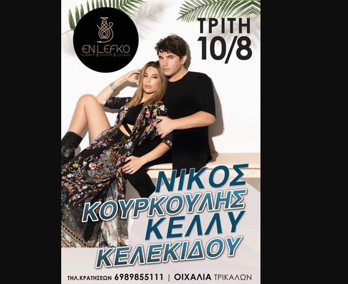 Νίκος Κουρκούλης και Κέλλυ Κελεκίδου εμφανίζονται επί σκηνής το βράδυ της ερχόμενης Τρίτης 10 Αυγούστου και… απογειώνουν τη διασκέδαση!!!… Ετοιμαζόμαστε και κάνουμε ρεζερβέ στο 6989 855 111.