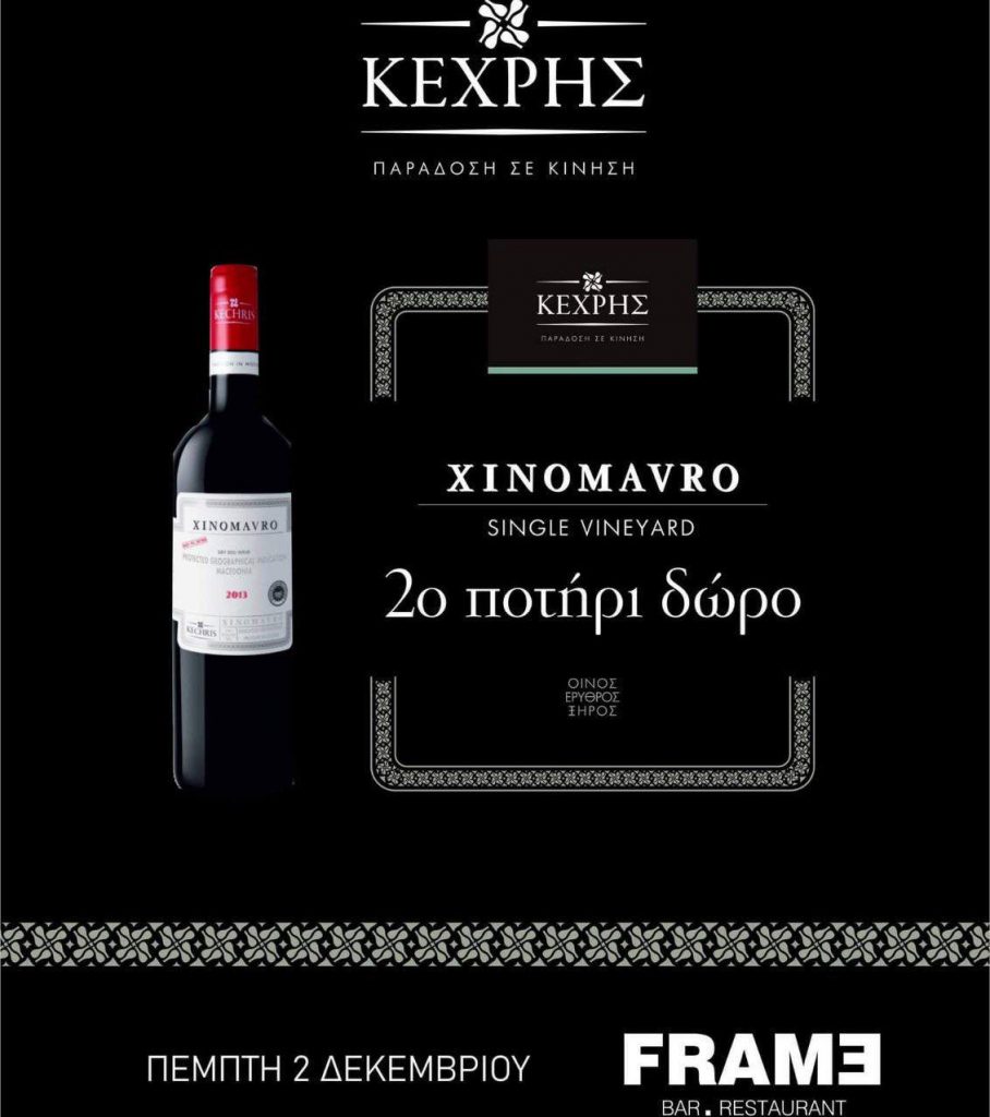 Μια βραδιά από αυτή που ονειρεύεται ο κάθε σωστός οινόφιλος προσφέρει απόψε το FRAME Bar Restaurant στα Τρίκαλα.