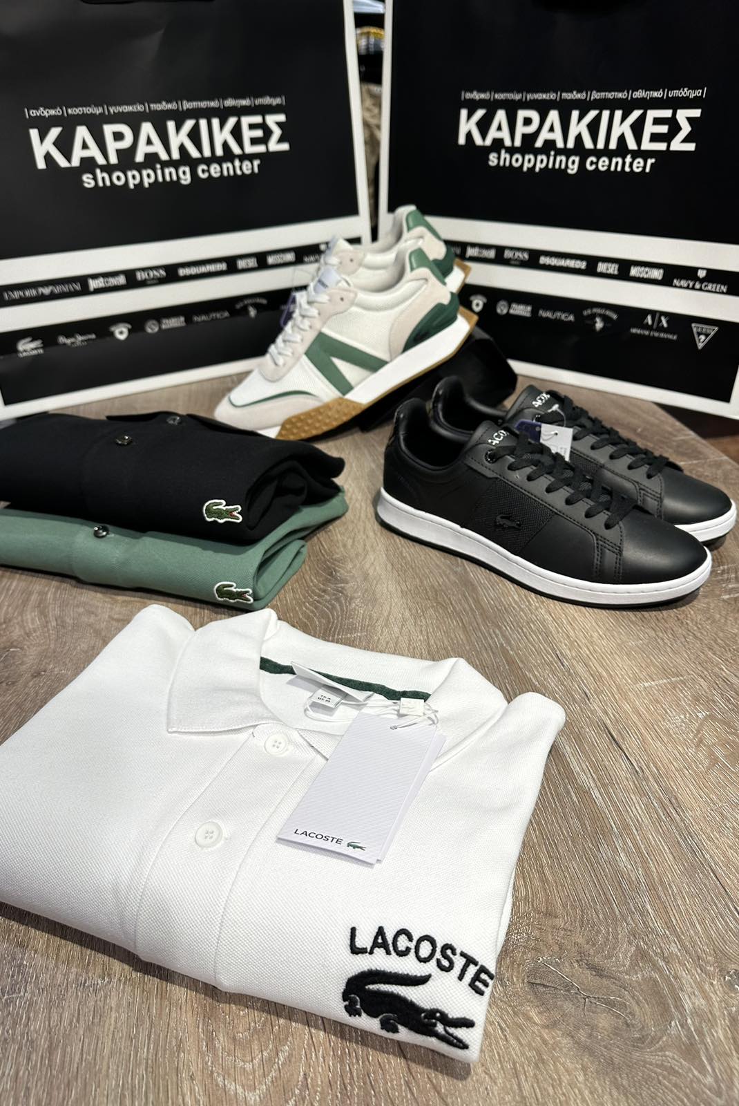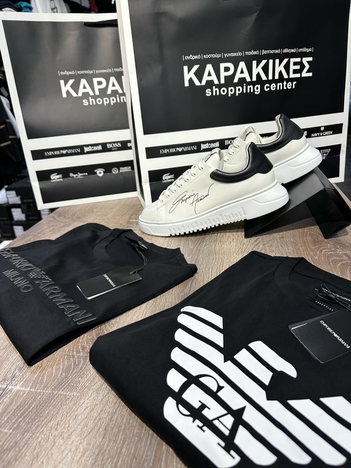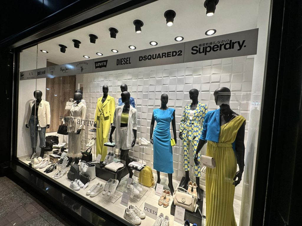 Εκεί βρίσκουμε EMPORIO ARMANI DSQUARED2 GUESS JUST CAVALLI MOSCHINO LACOSTE DIESEL BOSS SHOES NAUTICA NAVY&GREEN ANTONY MORATO MAKIS TSELIOS FRANKLIN MARSHAL US POLO PEPE JEANS WELLENSTEYN MAYORAL TASSOS MITROPOULOS ARMANI EXCHANGE SUPER DRY και άλλες πολλές στους 6 όροφους του εμπορικού κέντρου.