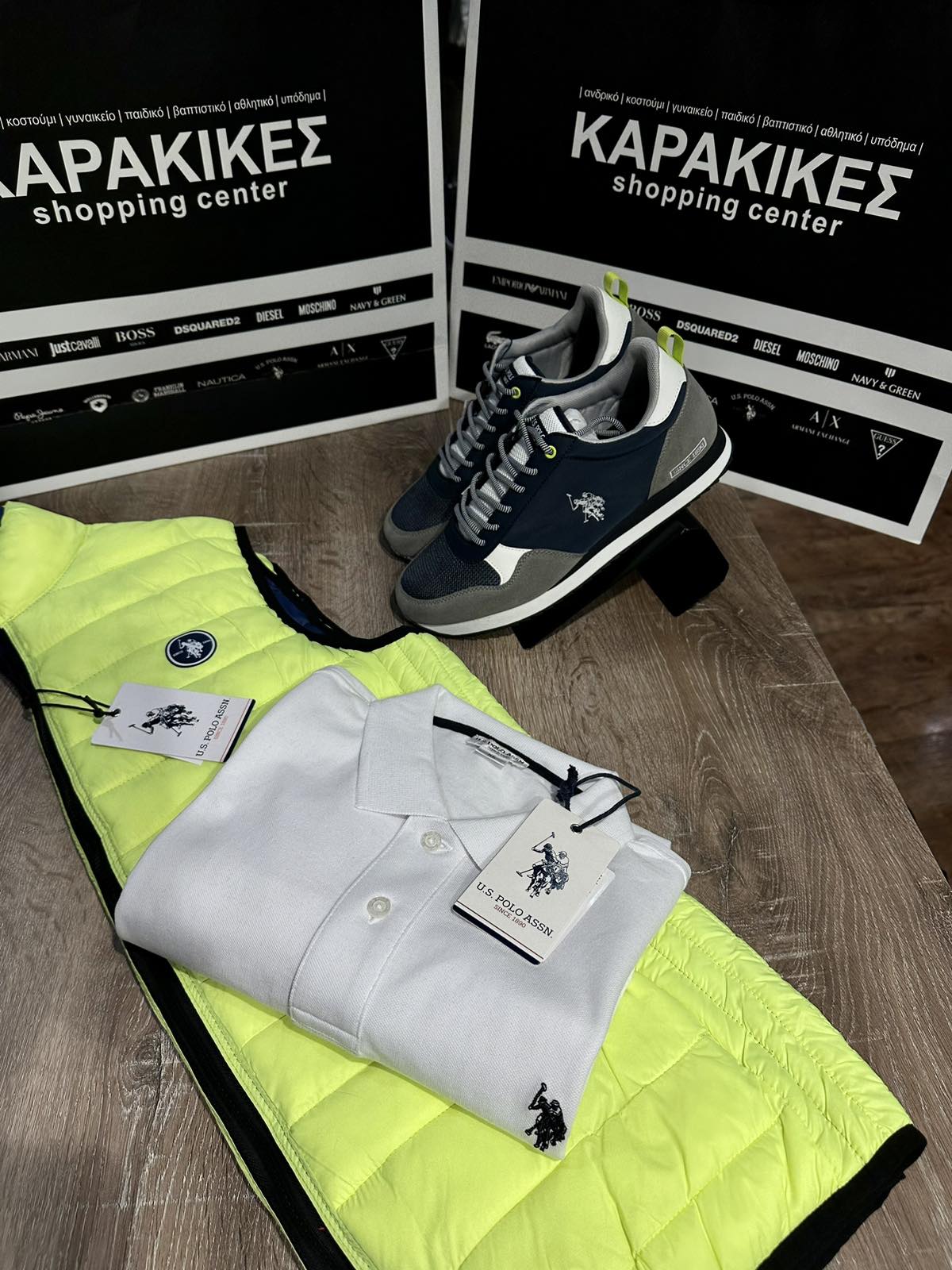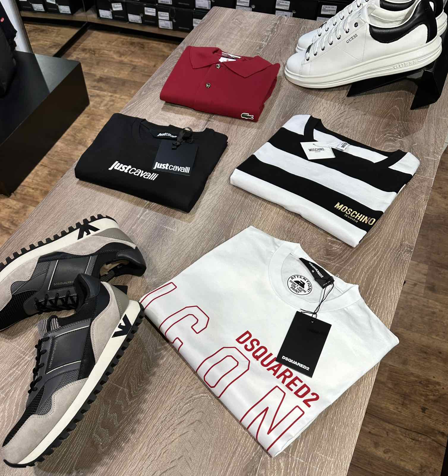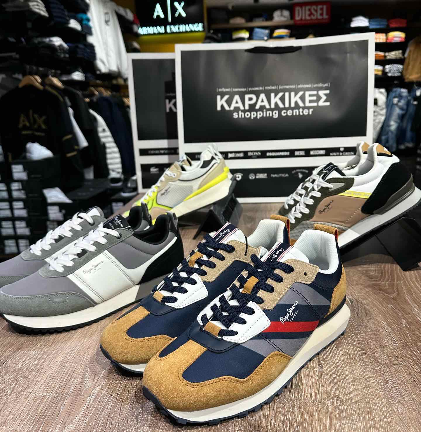 Εκεί βρίσκουμε EMPORIO ARMANI DSQUARED2 GUESS JUST CAVALLI MOSCHINO LACOSTE DIESEL BOSS SHOES NAUTICA NAVY&GREEN ANTONY MORATO MAKIS TSELIOS FRANKLIN MARSHAL US POLO PEPE JEANS WELLENSTEYN MAYORAL TASSOS MITROPOULOS ARMANI EXCHANGE SUPER DRY και άλλες πολλές στους 6 όροφους του εμπορικού κέντρου.