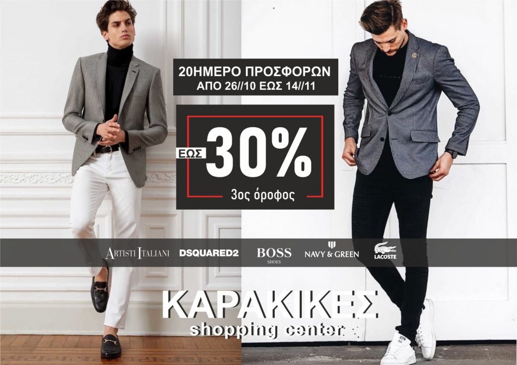 Τα Καταστήματα ΚΑΡΑΚΙΚΕΣ για την αποφυγή συνωστισμού κάνει τις προσφορές του για 20 μερες ξεκινώντας από Δευτερα 26/10! Κάντε τώρα δικό σας το αγαπημένο σας επώνυμο μπουφάν & sneakers με όφελος έως & -30% -50% ✔️ khujo diesel nautica lacoste pepe uspolo basehit guess navyandgreen levis dsquared #franklin marshal & άλλες