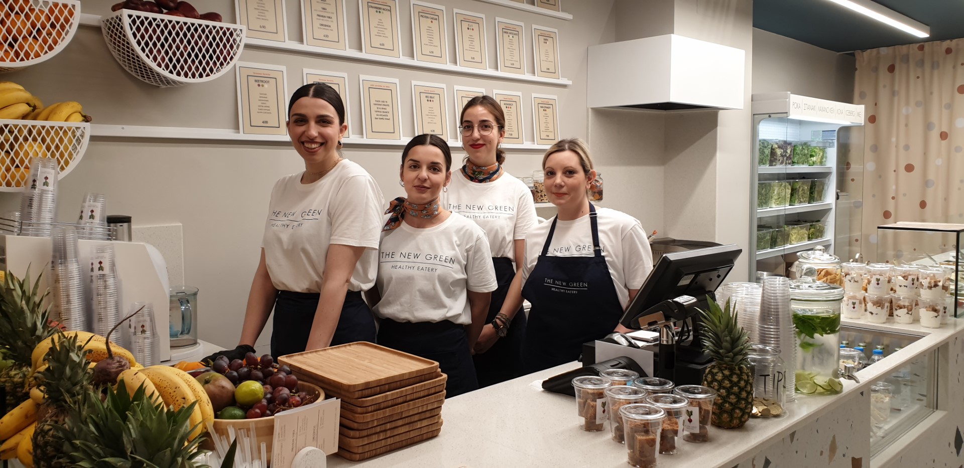 Στο The New Green απολαμβάνουμε υγιεινό πρωινό, δεκάδες επιλογές και συνδυασμούς σε δροσερές σαλάτες, lunch bowls (μπωλ γεύματος με επιλογές όπως σολομός, ρύζι, φακές, ζυμαρικά κ.α.) και φρέσκες dressing που ετοιμάζονται καθημερινά στην κουζίνα του καταστήματος. Παράλληλα προσφέρονται ολόφρεσκοι χυμοί, smoothies και protein shakes, ενώ τις επόμενες μέρες σε συνεργασία με διατροφολόγο δίνεται κατεύθυνση για το τι μπορεί ή πρέπει να απολαύσει ο καθένας, ανάλογα με τις επιθυμίες του.