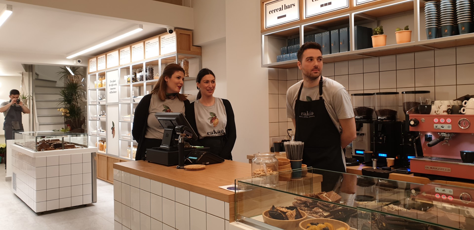 Ακριβώς δίπλα από το The new green μας υποδέχεται το Cakao, ένα καινοτόμο κατάστημα που μας συναρπάζει με το καλημέρα με τη μυρωδιά των φρεσκοψημένων ξηρών καρπών (στο φούρνο του καταστήματος) και ξυπνάει την πόλη με το δυνατό άρωμα του καφέ. Στο Cakao βρίσκουμε μια τεράστια ποικιλία σε σοκολάτες και σοκολατοειδή, χειροποίητες μπάρες δημητριακών, πραλίνες, τρούφες, ξηρούς καρπούς, αποξηραμένα φρούτα κ.α..