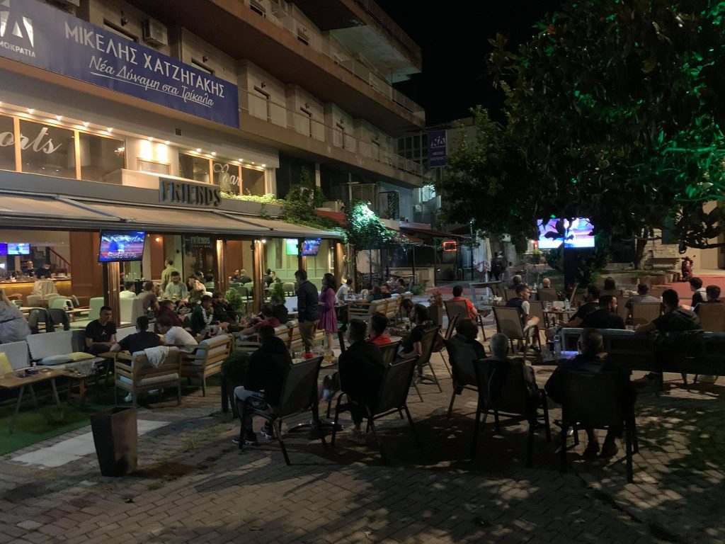 Με αυστηρή τήρηση όλων των μέτρων υγειονομικής προστασίας και στον άνετο αύλειο χώρο πίσω από το Πνευματικό Κέντρο των Τρικάλων απολαμβάνουμε τον καφέ και το ποτό μας… ρίχνοντας ματιές στις γιγαντοοθόνες που προβάλλουν αγώνες όλων των πρωταθλημάτων. Σταθερή επιλογή, κλασσική αξία στις μέρες μας…
