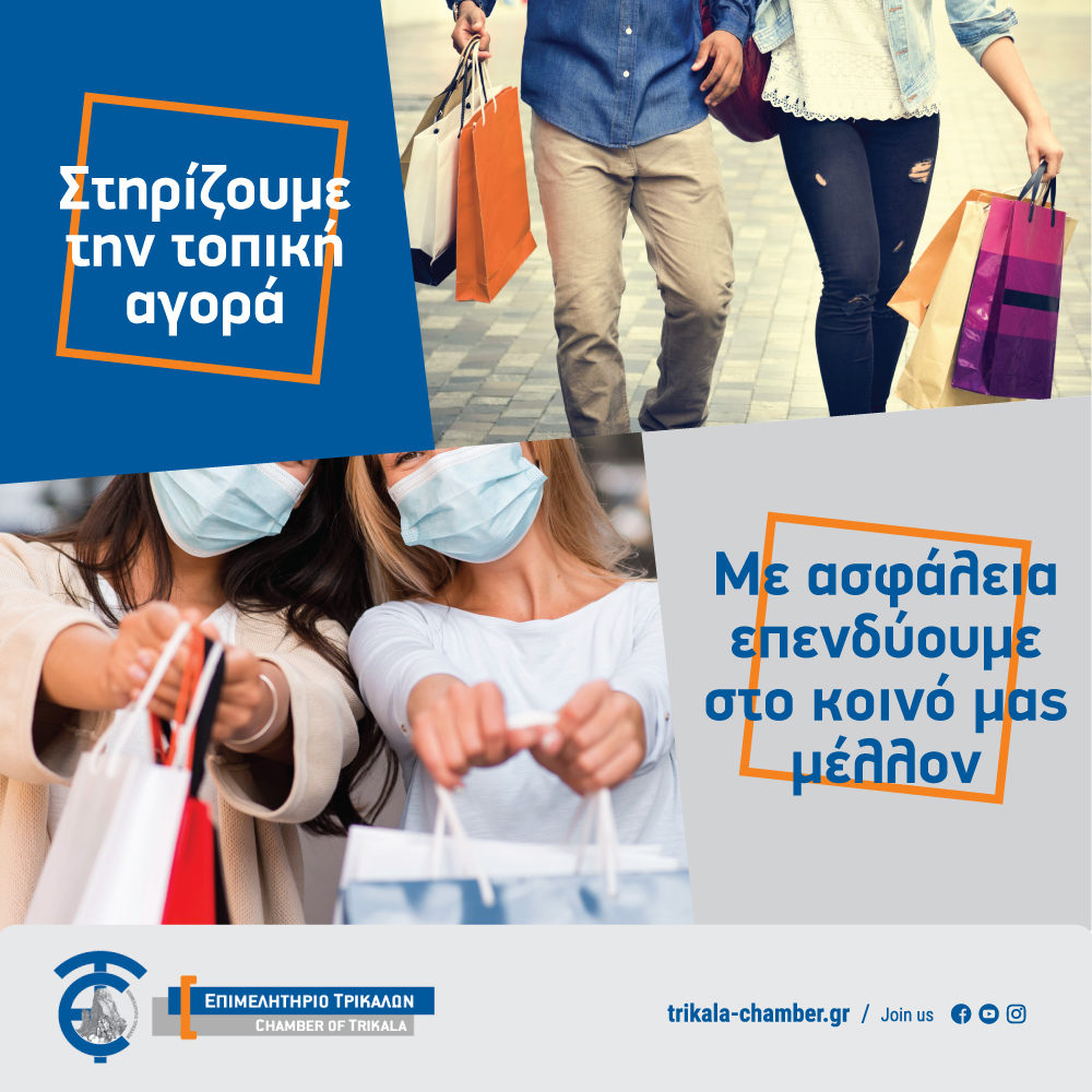Μήνυμα στήριξης της τοπικής αγοράς στέλνει το Επιμελητήριο Τρικάλων με την επαναλειτουργία των καταστημάτων.