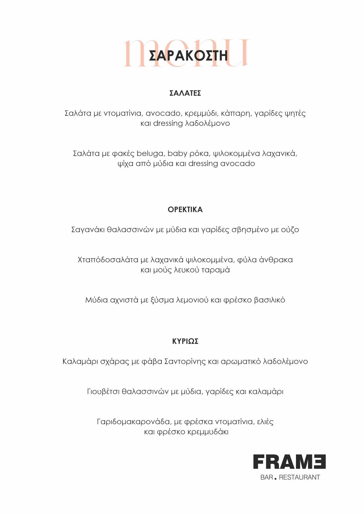 Δείτε το μενού παρακάτω και κάντε έγκαιρα Ρεζερβέ στο 6989584170: