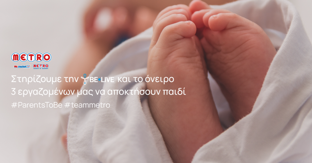 Με αφορμή τις Παγκόσμιες Ημέρες της Μητέρας στις 14 Μαΐου και του Πατέρα στις 18 Ιουνίου, η METRO σχεδίασε και υλοποιεί μία κίνηση με μεγάλη σημασία και με υψηλό συμβολισμό, υποστηρίζοντας το σωματείο Be-Live. Μέσω του φορέα, ο οποίος προσφέρει την ελπίδα για οικογένεια σε υπογόνιμα ζευγάρια που προσπαθούν να κάνουν παιδί μέσω εξωσωματικής γονιμοποίησης, η METRO αναλαμβάνει πλήρως το κόστος της συγκεκριμένης θεραπείας, για 3 εργαζομένους της, που θα επιλεχθούν και θα ενταχθούν στο πρόγραμμα.