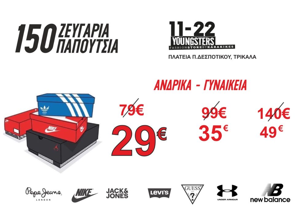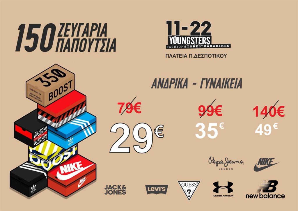 11-22 KARAKIKES: Δεν τελείωσαν οι προσφορές. 150 επώνυμα ζευγάρια sneaker από 29 έως 49 €