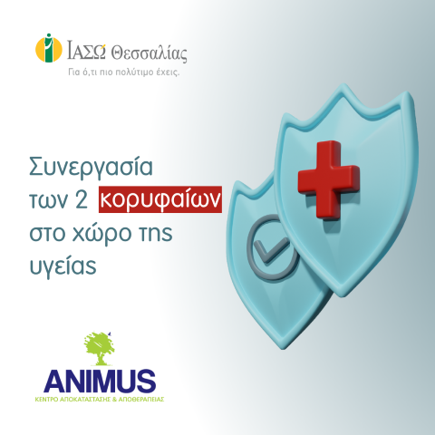 Το ΙΑΣΩ Θεσσαλίας, το μοναδικό ιδιωτικό νοσοκομείο της Κεντρικής Ελλάδας και το Animus, Κέντρο Αποκατάστασης και Αποθεραπείας με ηγετική θέση πανελλαδικά, ενώνουν τις δυνάμεις τους και παρέχουν στους ασθενείς τους ολοκληρωμένες υπηρεσίες υγείας και αποκατάστασης.