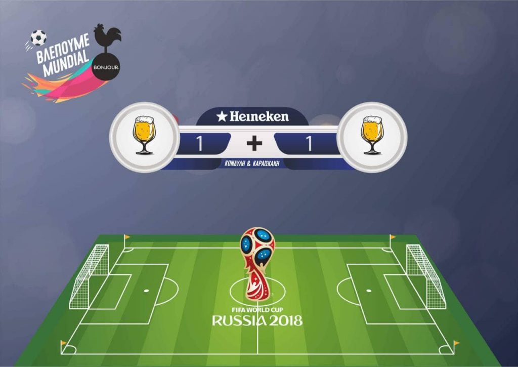 Από τις 15 του μηνός, οπότε και η αυλαία ανοίγει και κάθε μέρα με τρεις γιγαντοοθόνες θα μας βάζει… μέσα στο παιχνίδι. Όχι έτσι απλά όμως. Θα μας προσφέρει 1+1 μπύρα Heineken δώρο, καθώς και δωρεάν μπουφέ.