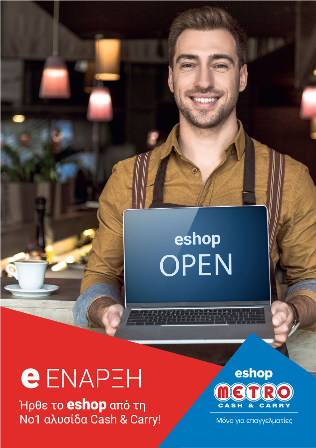 Τα METRO Cash & Carry, η Νο1 αλυσίδα χονδρικής πώλησης στην Ελλάδα, λανσάρουν για πρώτη φορά στην Ελληνική αγορά το νέο ηλεκτρονικό κατάστημα eshop.metrocashandcarry.gr, το οποίο απευθύνεται σε όλους τους επαγγελματίες. Η δημιουργία του νέου eshop έρχεται ως επιστέγασμα της έμπρακτης εμπιστοσύνης των επαγγελματιών εδώ και σχεδόν 50 χρόνια. Επιχειρήσεις μαζικής εστίασης & Ho.Re.Ca, όπως εστιατόρια, ταχεία εστίαση, καφετέριες, ξενοδοχεία, μπαρ, αλλά και Λιανικής πώλησης όπως περίπτερα, μίνι μάρκετ, περιφερειακές αλυσίδες super market, κρεοπωλεία και πολλές άλλες επιχειρήσεις, απολαμβάνουν αναβαθμισμένες προσφερόμενες υπηρεσίες σε όλα τα επίπεδα.