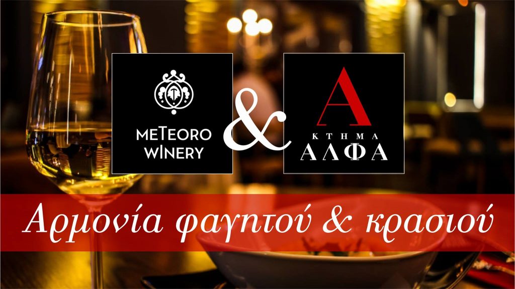 Το METEORO WINERY της οικογένειας ΤΣΙΝΑ, σε συνεργασία με το ΚΤΗΜΑ ΑΛΦΑ, διοργανώνει εκδήλωση για τους πελάτες της με θέμα: Αρμονία φαγητού & κρασιού. Η εκδήλωση θα πραγματοποιηθεί την Τρίτη το μεσημέρι, στις 3 μ.μ., στο χώρο του οινοποιείου στην Μεγάρχη Τρικάλων. Η ΕΚΔΗΛΩΣΗ ΑΦΟΡΑ ΜΟΝΟ ΕΠΑΓΓΕΛΜΑΤΙΕΣ.
