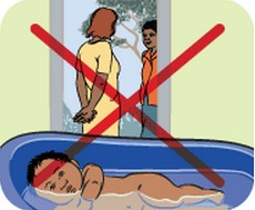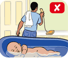 Προσοχή: Αν χτυπήσει το κουδούνι ή το τηλέφωνο και θεωρείτε ότι πρέπει οπωσδήποτε να απαντήσετε, τότε τυλίξτε το παιδί σε μια πετσέτα και πάρτε το μαζί σας.