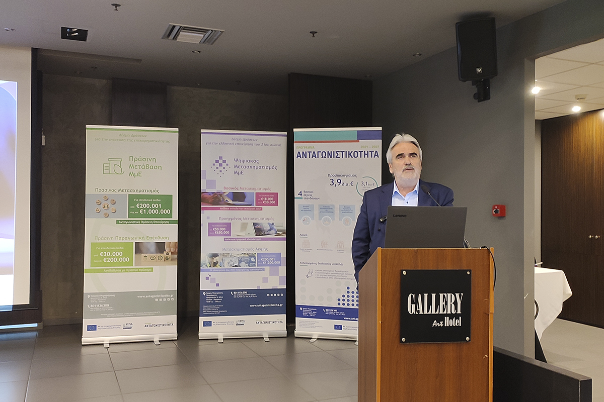 Ακολούθησε αναλυτική παρουσίαση των δράσεων από τα στελέχη της ΑΕΔΕΠ και ειδικότερα από τις κυρίες Γεράκη Μάρθα και Συμιακάκη Όλγα για τα προγράμματα της δέσμης «Ψηφιακός Μετασχηματισμός των ΜμΕ» και την κα Γεραμπίνη Πηνελόπη και τον κ. Παπάζογλου Χρήστο για τα προγράμματα της δέσμης «Πράσινη Μετάβαση ΜμΕ».
