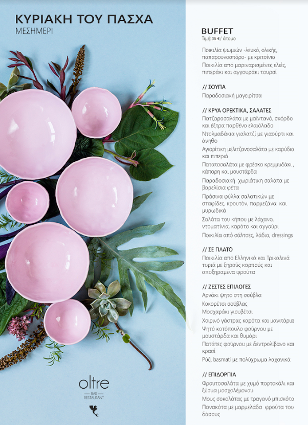 Τοπικά εδέσματα και παραδοσιακές γεύσεις συνθέτουν το Πασχαλινό σας τραπέζι στο Ananti Resort! Το Μεγάλο Σάββατο σας περιμένουμε μετά την Ανάσταση για ένα πλούσιο σερβιριστό μενού από το οποίο δε θα μπορούσε να λείπει η καθιερωμένη και πεντανόστιμη μαγειρίτσα ενώ την Κυριακή του Πάσχα γιορτάζουμε με πλούσιο μπουφέ, αφράτα τσουρέκια, κατακόκκινα αυγά, άθφονο τσίπουρο και πάντα με θέα τον ανθισμένο Θεσσαλικό κάμπο.