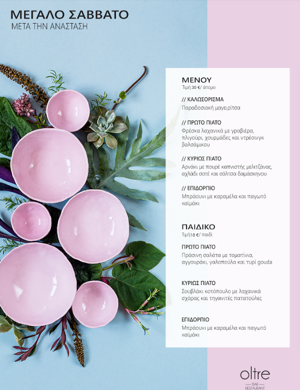 Τοπικά εδέσματα και παραδοσιακές γεύσεις συνθέτουν το Πασχαλινό σας τραπέζι στο Ananti Resort! Το Μεγάλο Σάββατο σας περιμένουμε μετά την Ανάσταση για ένα πλούσιο σερβιριστό μενού από το οποίο δε θα μπορούσε να λείπει η καθιερωμένη και πεντανόστιμη μαγειρίτσα ενώ την Κυριακή του Πάσχα γιορτάζουμε με πλούσιο μπουφέ, αφράτα τσουρέκια, κατακόκκινα αυγά, άθφονο τσίπουρο και πάντα με θέα τον ανθισμένο Θεσσαλικό κάμπο.