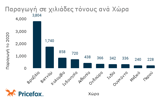 Ποιες είναι οι 10 κορυφαίες χώρες σε παραγωγή κόκκων καφέ;
