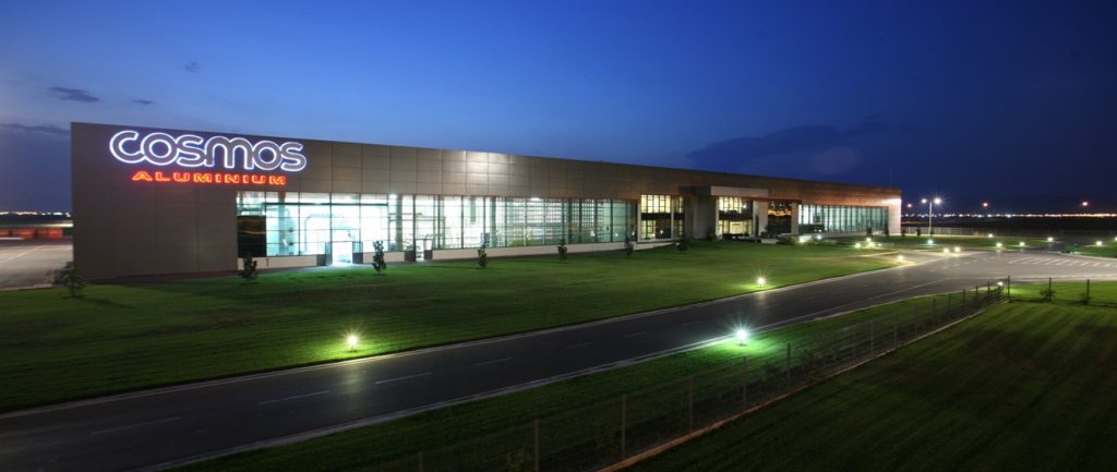 H COSMOS ALUMINIUM AE ιδρύθηκε το 2007 από τους Ξενοφώντα, Γιάννη και Θεόδωρο Καντώνια με έδρα τη Λάρισα. Στο τέλος του καλοκαιριού του 2008 ξεκίνησε την παραγωγή προφίλ αλουμινίου. Σήμερα, λειτουργεί 3 γραμμές διέλασης με προοπτική να αυξηθούν σε 4 το ερχόμενο καλοκαίρι με την κορύφωση του επενδυτικού προγράμματος που τρέχει συνολικής αξίας €47 εκ. και απασχολεί περίπου 200 άτομα προσωπικό ενώ εξάγει το 99% της παραγωγής της στις διεθνείς αγορές.