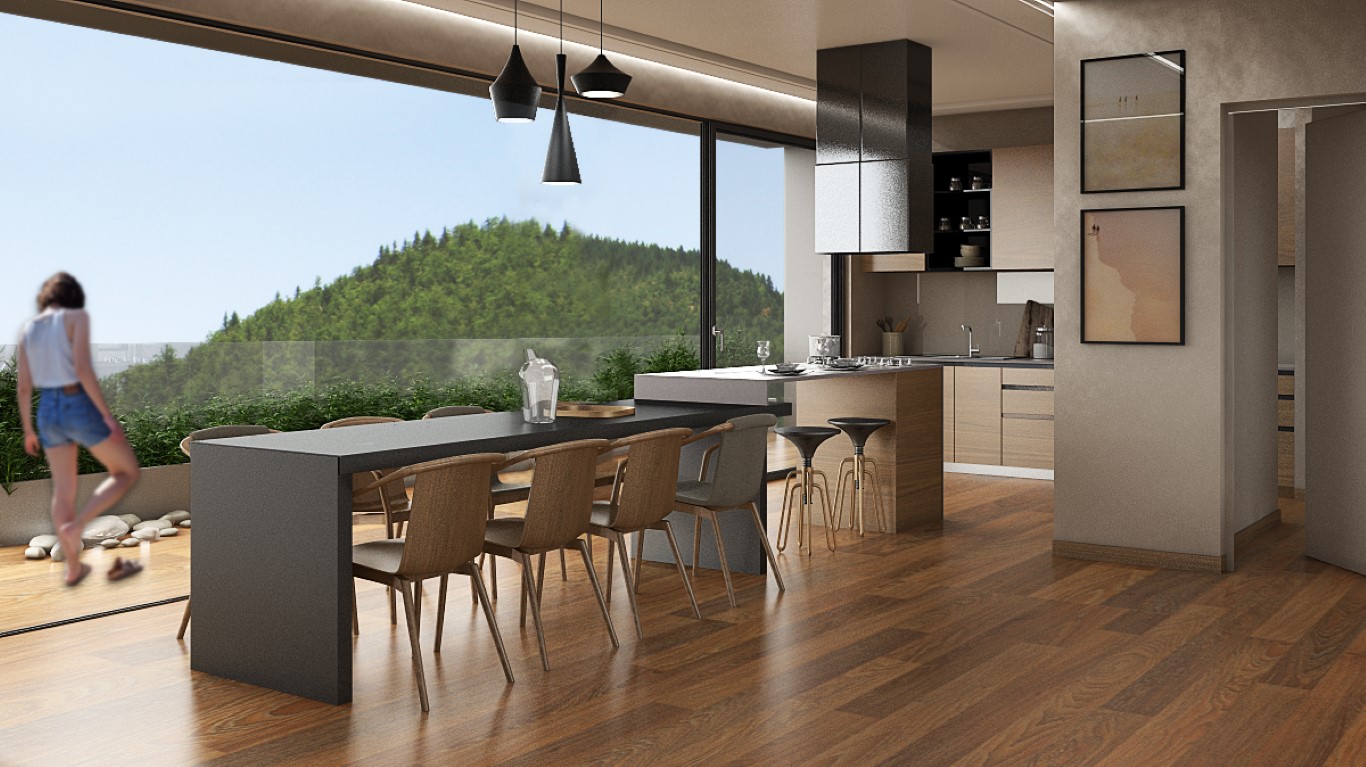 Η σχεδιαστική ομάδα βέβαια επεξεργάστηκε εκ βάθρων όχι μόνο τι τεχνολογικές λεπτομέρειες αλλά και κάθε κατασκευαστική πτυχή, επιλέγοντας ένα σημαντικά αναβαθμισμένο κατασκευαστικό προφίλ, από τα δρύινα δάπεδα των διαμερισμάτων μέχρι τις υπερπλήρεις κουζίνες με όλους τους μηχανισμούς και την αποθηκευτική επάρκεια που απαιτείται σε ένα σύγχρονο σπίτι.