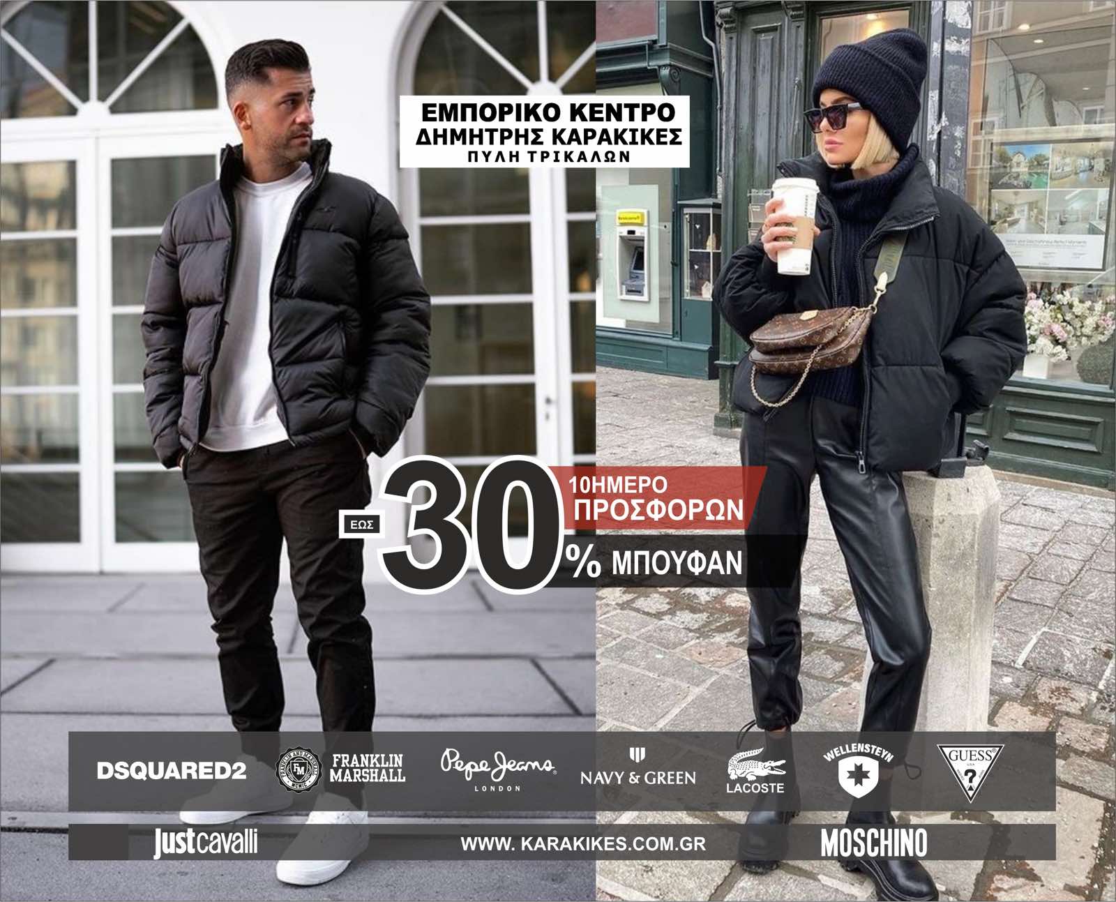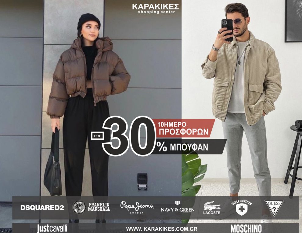Δεδομένου ότι οι ενδιάμεσες εκπτώσεις που είχαμε συνηθίσει τα τελευταία χρόνια καταργήθηκαν, τα καταστήματα ΚΑΡΑΚΙΚΕΣ αναζήτησαν λύσεις για τους πελάτες τους και κατέληξαν σε 10ήμερο προσφορών που θα μας κρατήσουν… ζεστούς το χειμώνα. Συγκεκριμένα εκεί θα βρούμε στα Ανδρικά / γυναικεία & παιδικά / Μπουφάν -30% όλων των γνωστόν εταιριών ! #GUESS #JACKANDJONES #KHUJO #JUSTCAVALLI #MOSCHINO #GUESS #LACOSTE #DSQUARED2 #WELLENSTEYN #FRANKLINMARSHALL #EMERSHON #NAUTICA #BASEHIT #ONLY #SPLENDID #KHUJO #USPOLO & άλλα…
